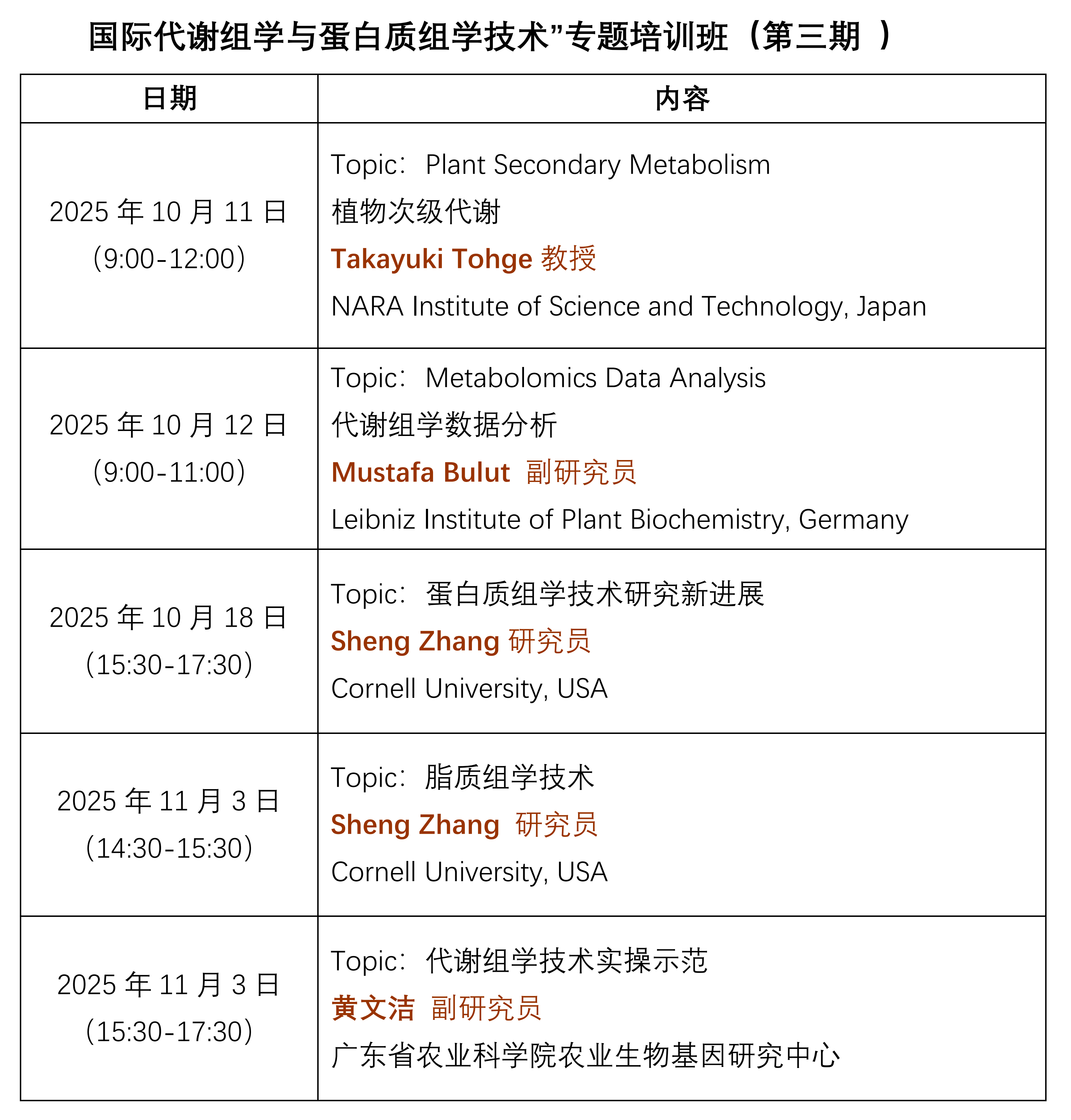 为促进科技人员系统学习掌握代谢组学、蛋白质组学技术,高效开展“生物技术+组学大数据+人工智能”驱动的生物育种相关研究。广东省农业科学院农业生物基因研究中心将举办国际“代谢组学与蛋白质组学技术”专题培训班(第三期),特邀来自美国、德国、日本及国内相关领域技术专家围绕基于质谱平台的代谢组学技术与蛋白质组学技术的原理、技术策略及前沿应用现状等方面进行讲解、交流与分析。